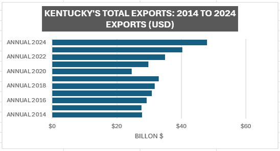 Exports help grow and strengthen Kentucky’s economy. Selling to other countries helps companies ride out seasonal and regional fluctuations in sales, extend the lifecycles of their products, develop and adapt new products and diversify their dependence on sectors and clients.