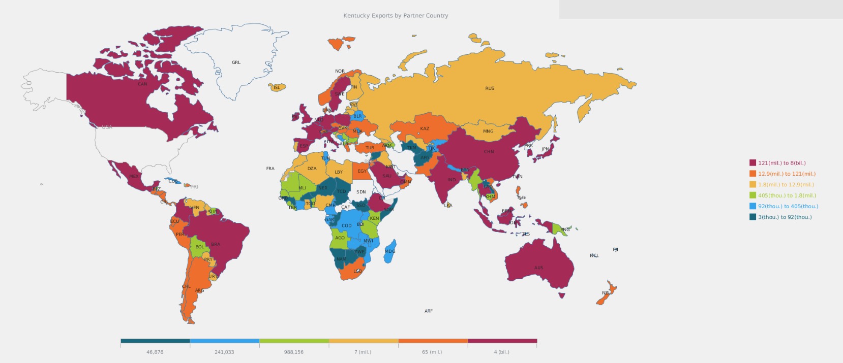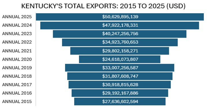 Exports help grow and strengthen Kentucky’s economy. Selling to other countries helps companies ride out seasonal and regional fluctuations in sales, extend the lifecycles of their products, develop and adapt new products and diversify their dependence on sectors and clients.